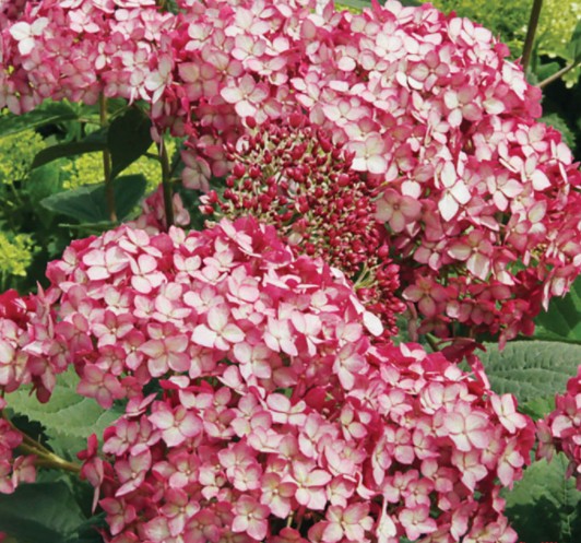 Этот уникальный сорт гортензии, выведенный американским селекционером Томасом Грином (Thomas Green Ranne) из коллекции Invincibelle, является настоящим мировым хитом. Компактные и пышные кусты начинают цвести в конце весны, украшаясь рубиновыми бутонами, которые формируют плотные соцветия-щитки. Цветки распускаются красно-розовыми, а к концу лета их яркие вишневые оттенки сменяются на нежные серебристо-розовые. Обратная сторона лепестков сохраняет рубиновый цвет до самой осени.