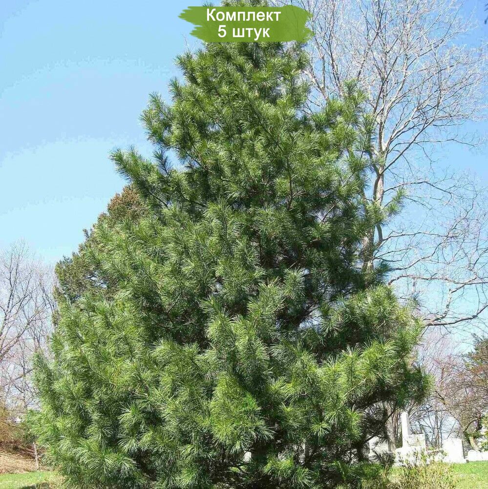 Пакет из пяти саженцев корейского кедра размером от 100 до 150 см предлагается по привлекательной цене, где покупатель получает пять растений по стоимости четырех. Корейский кедр отличается внушительной и плотной кроной. У молодых деревьев крона имеет форму округлую или яйцевидную, тогда как у зрелых она принимает цилиндрическую или коническую форму. С возрастом на деревьях может появляться несколько вершин, что связано с различными факторами, включая естественные процессы старения, когда дерево стремится получить больше питательных веществ и увеличить производство шишек. Также вершины могут обламываться под весом шишек или повреждаться медведями, которые лазают по деревьям в поисках шишек.