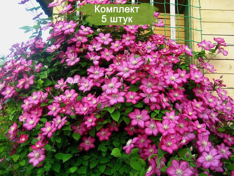 Этот комплект из 5 саженцев клематиса "Виль де Лион" станет отличным выбором для вашего сада, добавив ярких красок и элегантности в ландшафтный дизайн.