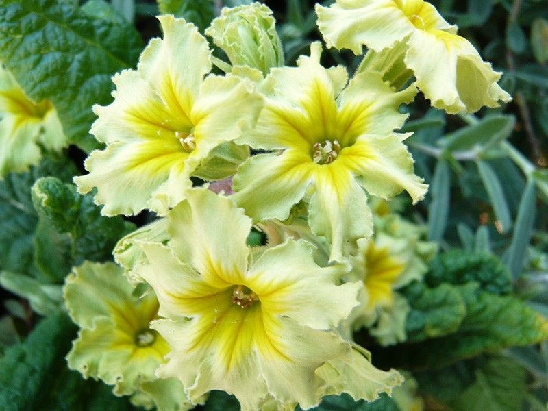 Примула Франческа (Polyanthus 'Francesca', Primrose 'Francisca') – это уникальный сорт, который привлекает внимание своими необычными лимонно-зелеными цветами с нежно-желтым центром. Цветение продолжается с марта по июль, радуя глаз своей продолжительностью и обилием цветов. Растение компактное, достигает высоты до 15 см и ширины 20-25 см, что делает его идеальным для небольших садов и клумб. Сорт напоминает примулу 'Green Lace' и относится к группе Polyanthus (многоцветковые примулы).