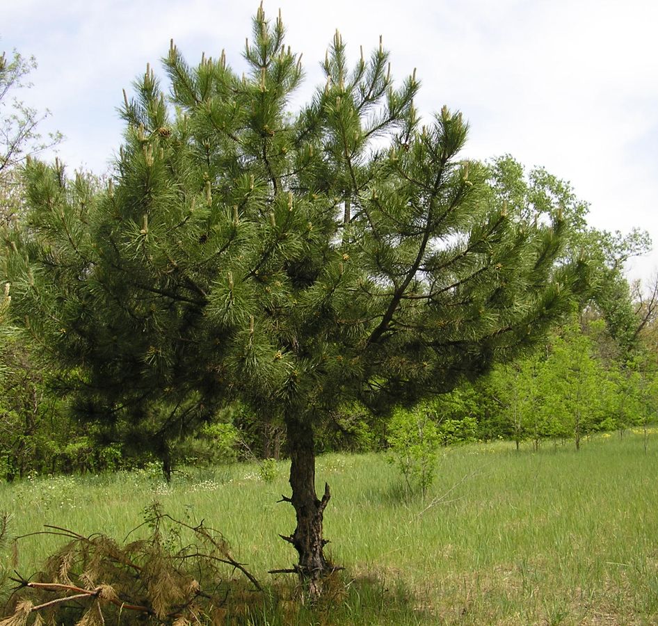 Крымская сосна известна своими древесными качествами, благодаря которым она нашла применение в кораблестроении. Крона молодого дерева обычно пирамидальная и плотная, полностью закрывающая ствол своими ветвями. С возрастом форма кроны становится более разреженной и напоминает зонтик, с ветвями, расположенными преимущественно в верхней части.